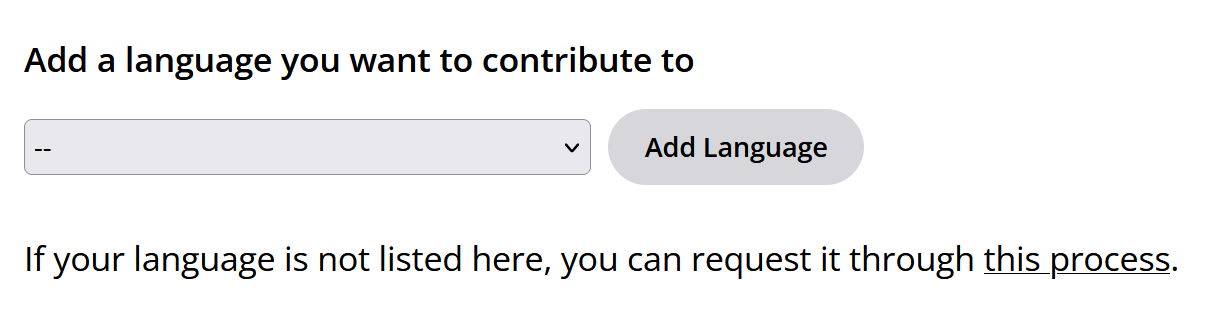 There is now a link to the language addition process next to the dropdown for the contribution language: