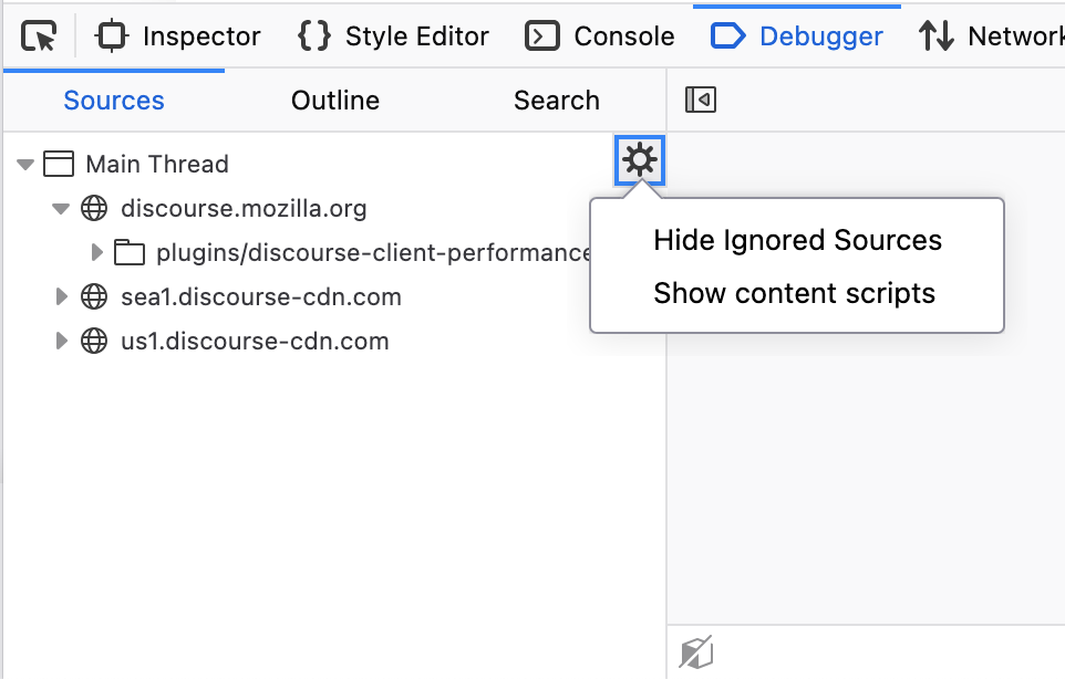 I think I found a fix, but when I now visit the Debugger pane, I don’t see any of the extension’s content scripts. Where can I see the loaded content scripts?